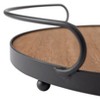 The Wooden Serving Tray is a great blend of function and style for your home! This charming circular wooden tray, complete with sleek metal handles, is designed to keep your tabletop or countertop impeccably organized, while adding a touch of elegance. Whether you're storing your salt and pepper shakers or setting up a beautiful serving table for guests, this tray makes every occasion feel special. It's not just an organizer; it's a statement piece that transforms your space. Made of: Iron and MDF Measurements: 9-3/8"W x 9"D x 2-1/6"H