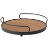 - Elegant Design with Practical Functionality: This circular wooden serving tray combines style and utility, featuring sleek metal handles that add a touch of sophistication to any tabletop or countertop setting.