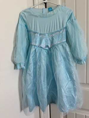[This review was collected as part of a promotion.] First, I think it’s misleading to label this as “classic”. It is the dress from the live action not the cartoon. Still it is a cute all light blue dress, even though it is pretty thin. The glitter didn’t fall off, though the tulle is a bit stiff. The biggest complaint my daughter has was that it was itchy. I also wish that the seams were finished off a bit nicer. *I received this product free in exchange for my honest opinion.*