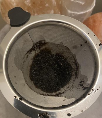 I love that this creates a large amount of steeped tea (I drink tea instead of coffee). The mesh strainer holds a good amount of loose tea, is easy to clean and looks great. I use this for loose tea and it keeps the tea dust out of the water as well and is easy to empty the filter and clean it after.