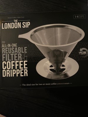 This London Sip Stainless Steel Coffee Dripper is great quality. It is durable and I love that it is stainless steel as well. It is good for coffee to drip, but than you can use tea as well. It is good for 1-4 cups. It is easy to use and easy to wash. It is very large size though which is great. I would recommend it.
