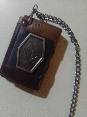 CUSTOM DESIGN: The metal shield features a custom design inspired by The Mandalorian and the attached chain makes this wallet a must-have for fans everywhere