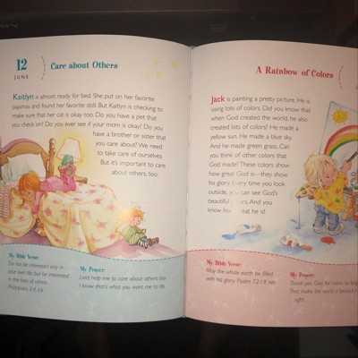 What a great book. It’s a short reading which we do before bed. Each lesson comes with a biblical verse and a short prayer. My daughter is 4 and she enjoys it. You can pick up the book and start on any day. You don’t have you start on January 1st