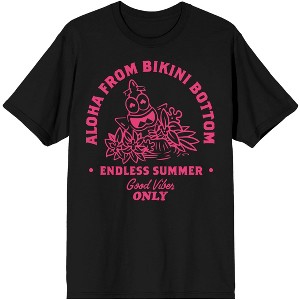 Greet the summer in silly Bikini Bottom style with this super fun Mens short sleeve tee! This all-black t-shirt features an outline of Patrick in vibrant magenta, surrounded by the words, Aloha from Bikini Bottom, Endless Summer, Good Vibes Only. This comfy shirt is made of high-quality, premium polyester and cotton material, and is professionally printed to ensure long-lasting color and print quality. It can be machine washed in cold water with like colors, and tumble dried on low for easy and convenient care. The Patrick Aloha from Bikini Bottom Mens Tee is an officially licensed product, making it the perfect gift for SpongeBob SquarePants fans!
