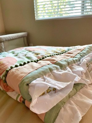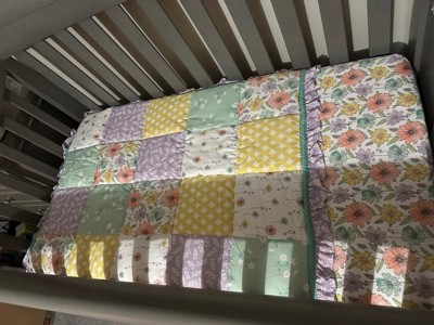 [This review was collected as part of a promotion.] The Peanutshell Nursery Crib Bedding Set for Baby Girls, Fresh Floral, is a charming addition to any nursery, offering a vibrant floral theme that blends well with a baby's space. It includes a reversible crib quilt, a fitted crib sheet with all-around elastic for a snug fit, and a 3-sided crib skirt, all machine washable for easy care.