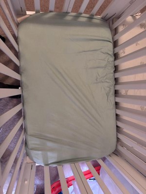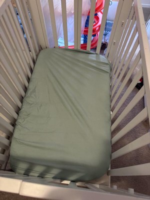 [This review was collected as part of a promotion.] This is such a nice soft cotton material. It feels fresh and crisp when putting it on the mattress. It stays put on the mattress and does not roll up with movement from baby!