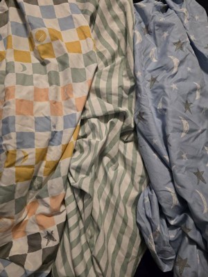 [This review was collected as part of a promotion.] I absolutely love that this Peanutshell set comes as a 4 pack, which is a lifesaver since I can easily swap in a fresh sheet whenever I needed to change my boys mess. The microfiber material feels incredibly soft and breathable. I am also a huge fan of the mix of checkered and celestial patterns, they add so much fun to our nursery and my boys love looking at them.