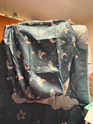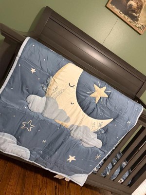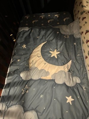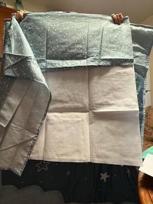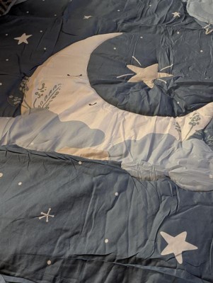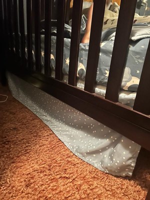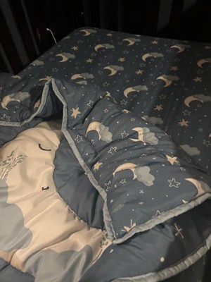 [This review was collected as part of a promotion.] The Peanutshell Crib Bedding Set in Celestial Serenity 3 piece set is a cute little bedding set for your baby's crib. It comes with a bed skirt, a fitted sheet, and a quilt. The design itself is absolutely adorable and I love the celestial pattern. I also love that the skirt is slightly different than the sheet and quilt, making it unique and stand out a little more. I also like that the set is machine washable as we all know babies will eventually make a mess of some sort. Drying instructions are to tumble dry on low only, so heat should be limited! My only real complaint about this set is that it's 100% Polyester, and for babies I prefer to use natural materials like cotton, or at the very least a high mix of natural material. I wish there would be less synthetic, however the price point is more affordable and that's more accessible for a lot of families so that is a plus!