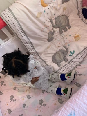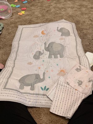 [This review was collected as part of a promotion.] The sheet was a little small but it did fit. The elephant was very cute, my daughter immediately grabbed her elephant animal to match. The blanket was very lightweight and breathable for her nap