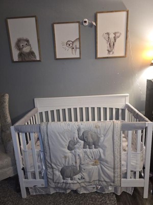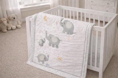 [This review was collected as part of a promotion.] I had to wash these once. I took them out of the box that’s why they’re not one actual baby bed. They’re so cute. The elephants are so cute. It’s so soft but I wanted to wash them because I didn’t know. I just don’t wanna put it on a brand new baby until they’re freshly washed and baby wash the print one is adorable. It fits good the skirts a little bit too big for a baby bed but we just pen it and it’ll work that picture later. It has a nice texture. A really cute design little elephants on it .