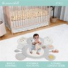 The Elephant Safari Crib Bedding and Tummy Time Mat Set by The Peanutshell creates an engaging safari oasis for baby. This charming 4-piece set includes a generously sized elephant-shaped play mat designed for tummy time to sit up stages. With so much to discover, this playmat grows with baby and provides endless opportunities for sensory exploration, fine motor skill development, and imaginative play. The thoughtfully designed playmat features interactive activities, a non-skid backing for safety, and a cuddly giraffe security plush. This set also includes a fitted crib sheet featuring sweet safari animals, a dotted stripe crib skirt in soothing natural tones, and a matching blanket for extra coziness. Fade-resistant and machine washable for easy care, these nursery essentials make a thoughtful and practical baby shower gift.