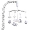 A herd of elephants will gently guide your baby boy or baby girl to dreamland in the Elephant Walk 4 Piece collection. The soft, easy-care microfiber quilt features a whimsical print with stripes and sweet elephants in a soothing grey and white palette, with a coordinating chevron print border. The fitted sheet features an allover print with grey elephants on white and is soft against your baby's skin. The 3-sided dust ruffle is in the grey and white chevron print. This crib bedding set is paired with and adorable grey elephant musical mobile by The Peanutshell. It features sweet grey elephants and fluffy white clouds and plays a gentle lullaby to soothe your baby to sleep. Designed to fit standard cribs. Two AA batteries required, not included. A perfect neutral starter set for a baby boy or girl's nursery!