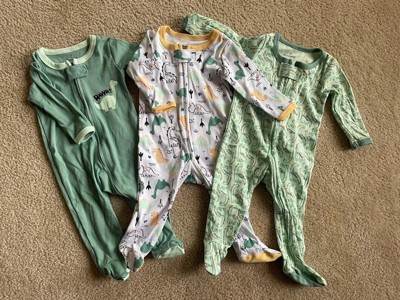 The Peanutshell Green Dino Sleepers for Boys or Girls, 3 Pack Footed Pajama Set, 3-6 Months