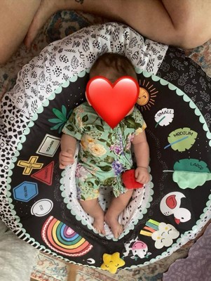 [This review was collected as part of a promotion.] I was sent this for free from Influenster in exchange for my honest review. My LO hasn’t arrived yet, so I haven’t been able to try this out with an infant. The hole where baby goes seems really small (a small teddy bear barely fits) so I’m not sure how suitable it will be for a baby. The instructions say to inflate with a pump, which is not included. I think I will opt to use this as a play mat instead of the inflatable ring (won’t inflate). The little toys and contrasting colors will hopefully be of interest to my baby and can be used for tummy time. :)