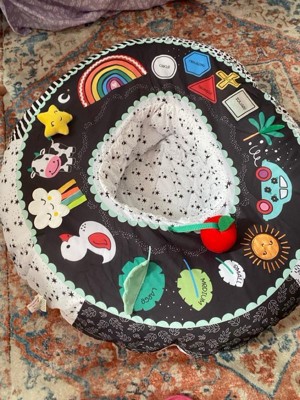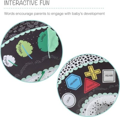 Introduce baby to the world of educational play with the Montessori Activity Play Ring from The Peanutshell. Designed in high-contrast black and white with primary bright colors, this Montessori-inspired design is a hands-on interactive activity hub. Teach baby shapes, colors, patterns, size variance and textures to help promote sight recognition and visual development. The rattle toy attachment stimulates self-guided hand-eye coordination, while fidget ribbons, flaps and other tactile features cater to little hands. Five distinct learning zones ensure endless hours of safe and enriching playtime. The non-skid backing provides stability during play, while a convenient carry handle makes it easy to transport on-the-go. Plus, it's machine washable, easily inflatable, and folds flat for convenient storage - a perfect combo for busy parents.