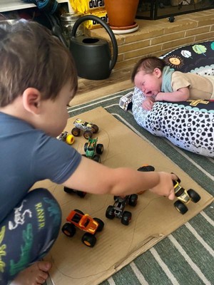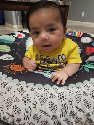 [This review was collected as part of a promotion.] As much as my child looks like she hates it, she really loves it. Makes parenting two small children that much easier. My toddler loves that his little sister can watch him play with his trucks during tummy time and my daughter seems comfortable content and safe. Fun designs that keep both kids entertained