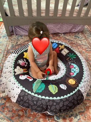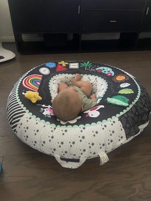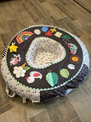 [This review was collected as part of a promotion.] Super comfortable in the middle for a baby to sit in . It gives you directions on how to blow it up depending if a baby can sit on their own or needs support . It’s so cute that my baby fell in love with it immediately and it has a lot of sensory objects and pictures to keep their attention. It’s really big also so the baby can sit on it or climb on it and it can be placed anywhere . If this ever gets damaged I will purchase for my next baby because I love it and feel like I prefer this over the baby sitting in a boppy or any other pillow kind .