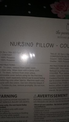 [This review was collected as part of a promotion.] The peanutshell bedding &Decor nursing pillower this is a pillow I absolutely love you don't only have to use it for nursing you can also use it for a Decor on your bed is a very comfortable pillow you can use it for a neck pillow very comfortable quality made the size is 22.5 in x 18 in made with fabric contents 100% polyester the cover and the pillow is 100% polyester and very soft and cushion this is a pillow I recommend to all nursing moms