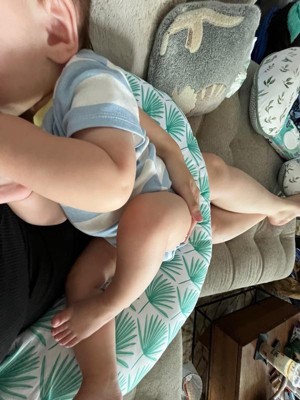 Immerse baby in a serene green oasis with Boho Botanical Nursing Pillow by The Peanutshell. Crafted from premium-quality fabric, the bohemian botanical design in calming green tones brings a touch of nature indoors. Our nursery pillow offers essential support for cuddles, tummy time, breastfeeding, bottle feeding, and back support when baby learns to sit up. Cleaning is effortless with a gentle wash.
