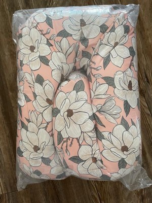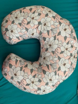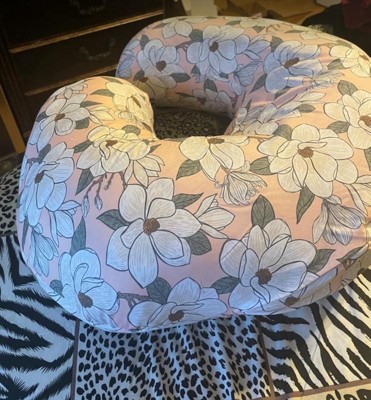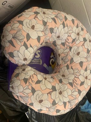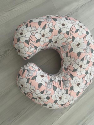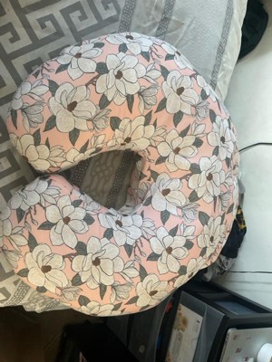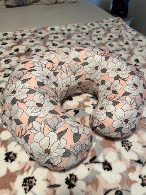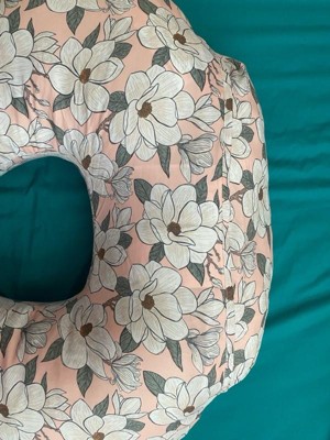 [This review was collected as part of a promotion.] The actual pillow has a very cute design with a prominent pink floral color. It’s very comfortable for me and baby. Soft and plush but also very durable. Great support especially for nightime feeding and can also be used during baby tummy time/sitting practice.