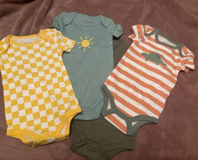 [This review was collected as part of a promotion.] I love this set of bodysuits for my little baby boy. They are 100% cotton and super soft, quality feels great. The designs are super cute with bright fun colors and a dinosaur one, as well as a truck. They fit my baby perfectly and have a little stretch so I know he’ll be comfortable in them.