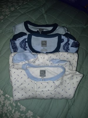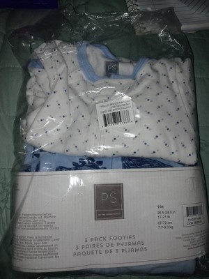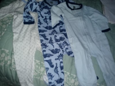 The Peanutshell footed baby sleeper 3 pack set will keep your baby boy or baby girl snuggled up! It features adorably doodled dinosaurs and simple micro polka dots in classic hues of sky blue and navy. Made with 100% pure cotton to keep your little ones cool and comfortable. The material is breathable and super soft against baby's delicate skin. Our convenient full-length zippers make post-nap and nighttime diaper changes easy for parents. Footed bottoms keep your kiddo's toes warm and cozy. This 3-piece set is great for new moms and dads, ensuring that there will always be an extra sleeper or two on-hand and your baby looks stylish when they sleep or play. All sleepers feature a two-way zipper from neck to foot for quick and easy diaper changes; inner placket to keep baby's skin safe from zipper teeth and a tab at the neck snaps closed to keep little fingers away from the zipper pull. So soft and snuggly, you'll want to leave your baby in this long after sleeping is done! Available for newborn to 9 month size.