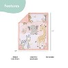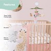 The Peanutshell 4 Piece Microfiber Baby Crib Bedding Set brings a charming and playful safari theme to your baby’s nursery, featuring adorable zebras, elephants, giraffes, and cheetahs. This 4-piece set includes everything you need for a coordinated nursery look: a beautifully crafted crib quilt, a fitted crib sheet, matching bed skirt, and safari girl crib mobile. The fitted crib sheet is designed to fit standard crib mattresses (28" x 52") securely with all-around elastic, ensuring a snug and comfortable environment for your baby. Made from soft microfiber, this bedding set is gentle on your baby’s delicate skin, offering warmth and coziness throughout the night. The quilt adds an extra layer of softness, creating an inviting space for your little one to rest. All pieces are machine washable, making them easy to clean and maintain. The microfiber fabric is designed to retain its softness and vibrant colors, ensuring the bedding set remains fresh, cozy, and beautiful through repeated washes. The jungle themed crib mobile features a digital music box offers 12 soothing lullabies that can easily be adjusted based on your baby's mood, with volume control for that optimal level of sound. With just one click, you can set the mobile to play music, rotate, or both, giving you full control of your baby’s relaxation experience. This complete baby bedding set is the ideal addition to your baby girl's bedroom.