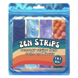 The Pencil Grip™ Zen Strips, Sand Gradient Set 2, 4 Per Set, 6 Sets | Sensory strips help calm and focus! Simply touch, swipe, scratch or fidget with Zen Strips to manage stress, boost concentration and enjoy a calming effect. With an easy peel, stick, and press application, use on your everyday items including smartphones, laptops, tablets, or even water bottles. Manufactured using non-toxic, child-friendly materials. Zen Strips offer a compact, lightweight, and non-invasive method to improve focus and self-regulate emotions by providing tactile sensations while fidgeting. Compact and lightweight, offering a convenient method for individuals to self-regulate emotions and focus while also providing calmness. This set includes 24 Zen Strips (4 per set, 6 sets) with a raised grainy texture in various blue, purple, pink and orange gradient designs.