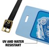- QUALITY MATERIAL: Our stylish tags are crafted from durable vinyl, and include an adjustable leather buckle strap. The featured design is displayed on one side, with a slip pocket on the other. Includes contact information card. Approximately 2.5" x 4.25" in size. Set of two tags.