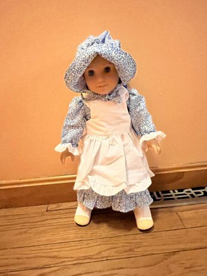 Officially-licensed Little House on the Prairie® Mary Ingalls 18" Doll Prairie Dress is inspired by Laura Ingalls Wilder's treasured stories. Gorgeous pioneer-style, cornflower-blue calico dress, bonnet feature matching lace and pleated trim, and complete with white pantaloons! Collectible 3 pc. dress set includes a white apron and a blue calico dress with matching bonnet, compatible for use with 18 inch American Girl dolls. Authentic apparel makes stories come alive and encourages imaginative play with 18" dolls. Exclusively made by The Queen's Treasures, creator of the highest quality 18" Doll Furniture, 18" Doll Clothes, 18" Doll Shoes & Accessories!