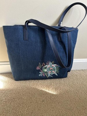 - The Metro Tote is crafted from durable denim and detailed with an exclusive seascape print. Designed with plenty of pockets and a long adjustable strap, this classic design looks and feels perennially fresh.