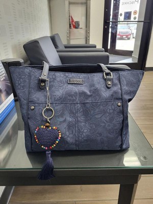 Lovely tote. Everything I need fits w/room left-over! My only complaint is that the wave patterned fabric along w/charms continue the theme, but the fish smell is over the top. Aired it for a couple of days & it’s now ok.
