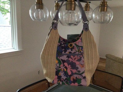 [This review was collected as part of a promotion.] I like it but can see the weaving loose in some places, also I would have liked the little design between the fabric and crochet part to be on the back as well. Happy with the size of the bag.