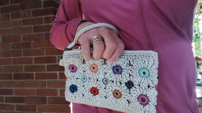 [This review was collected as part of a promotion.] I love this small crocheted clutch in pink. It’s beautifully made with attention to detail. Fits my phone and small wallet and lipstick, and key fob.