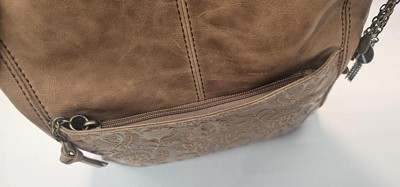 [This review was collected as part of a promotion.] Nice quality crossbody. I love the soft leather and the beautiful pattern on the pocket. It is a great size & has 2 pockets on the outside, which is a requirement for me. The pockets on the inside are nice & deep to hold lipsticks, pens or even your phone! I like how the zipper pocket inside also has a pocket behind it! Perfect to drop my keys into or my work badge. It also comes with a cute keychain-like accessory. The only negative remarks I have is the marks in the leather made by the pockets on the outside.