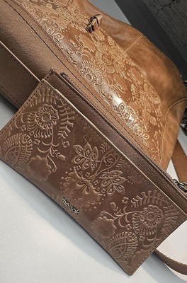 [This review was collected as part of a promotion.] Gorgeous wallet. Nice size to take on various events where you just need a couple items with you. Love the tooled leather