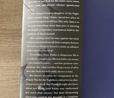 - A heart-wrenching romance, dark magic, and bloodthirsty intrigue. Just finished reading this book (took me 6 days), and I couldn’t put it down. I’m new to reading so usually it’s hard for me to find a book that I genuinely enjoyed reading, but I really enjoyed how the author wrote so much that the storyline instantly pulled me in. It’s a slow burn but the two steamy (🥵) chapters make the wait worth it. I can hardly wait to continue the story in the upcoming book! *I recommend buying in store or pickup, so the book isn’t damaged through shipping. *SPOILER: Oraya better not betray her man or imma be very upset lol