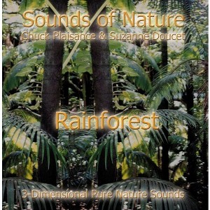 RAINFOREST is a CD with pure nature sounds carefully selected and arranged. The CD is part of the audio series "Sounds of Nature" and "Tranquility" combining the state-of-the-art binaural recordings of Chuck Plaisance with Suzanne Doucet's editing and arranging skills. Seven of their titles made it into the top ten environmental charts at Amazon. Com, including being #1 and #2 for over two years. Suzanne Doucet's 30 years in the world of New Age music have provided her with incomparable knowledge and experience. Suzanne is an international recording and performing artist whose background encompasses being a prime time TV "Pop Show" hostess (guests included the BeeGees, Grateful Dead, Keith Emerson, Donovan), a songwriter & composer, script writer, sound designer, producer, A&R record label executive, music publisher, label owner & manager, marketing consultant, and retailer. "Relaxation is a key to balance," that's Chuck Plaisance's underlying principle for his work. Whether he teaches voice lessons or he records and arranges Nature Sounds, he works on the placement of sound. Creating harmony and balance through the frequencies of sound is what our world needs" comments Chuck.