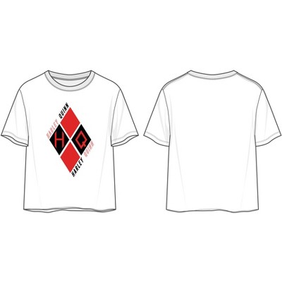 • CUSTOM DESIGN: A black and red heart decorates the front of this graphic tee while a red diamond with Harley's name appears between the black initials HQ on the back. Harley Quinn fans will love this fun custom design.