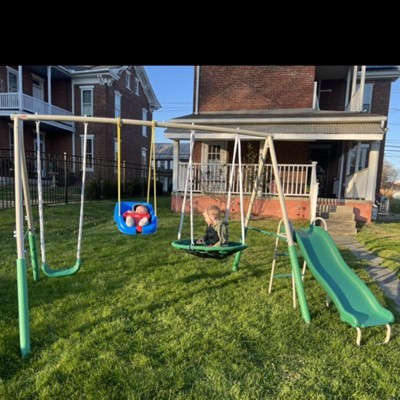 The Swing Company Northridge Metal Swing Set with Saucer Swing and 5' Slide