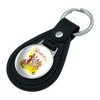 - DURABLE LEATHER KEYCHAIN: Give your keys some street cred with our leather keychain with durable resin-topped emblem. Pocket-sized for convenience, this keychain easily stows away in purse, pocketbook, or evening bag. The easy-to-spot image makes it perfect for keeping track of that special set of keys.
