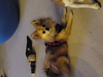 Run tape from the base of your pet’s neck, at the collar, to the base of their tail, where the back ends and the tail begins.