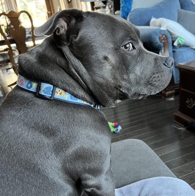 I love this collar. It is adorable and very well made. Machine washes well, I hang to dry. It is so hard to find cute collars especially for male puppies/dogs. Worthy Dog has so many cute collars, they are a little more expensive than others but it seems to be really well made and have not noticed any fading or wear. I will definitely be buying more, there are so many cute ones to choose from. My puppy is 8 months old, but he has a huge neck so he is wearing a L.