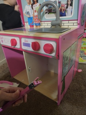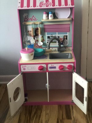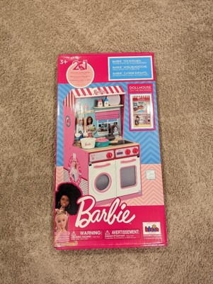 [This review was collected as part of a promotion.] I got this for my niece's birthday and you should have seen how excited she was. She loves Barbie everything and this was a great addition to her toy collection. This play kitchen is a 2 in 1. It has a play kitchen on the front and a doll house on the back. The kitchen comes with kitchen accessories like a pot and pan, utensils, and salt and pepper shakers. The 2 in 1 is made out of wood and will require assembly.