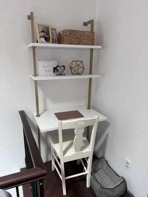 Theo Metal Wall Shelf Kids' Desk Gold/White - Nathan James: Ladder Desk for Children, Metal Frame, Particle Board Surface