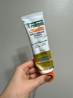 [This review was collected as part of a promotion.] I’ve tried so many toothpastes over the years, but TheraBreath Deep Clean Fresh Mint really stands out. From the first use, you can feel how different it is — it doesn’t have that overly strong, artificial mint burn that some brands use to feel clean. Instead, it gives a smooth, refreshing clean that lasts for hours. What I love most is how fresh my breath stays all day. I can brush in the morning, go to work, and still feel confident that my breath is fresh by the afternoon. It also seems to help reduce plaque and prevent that fuzzy feeling on my teeth between brushes. I really appreciate that this toothpaste is dentist-formulated and designed to fight bad breath, plaque, and gingivitis. It gives me that “just left the dentist” clean feeling every time without being harsh or irritating. The fresh mint flavor is just right — not too sweet, not too strong — and it leaves a cool, pleasant taste. Overall, I’d say this toothpaste is perfect for anyone who wants a deep clean, long-lasting freshness, and gentle formula that really works. It’s definitely earned a permanent spot in my bathroom! 🦷✨