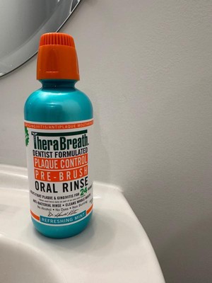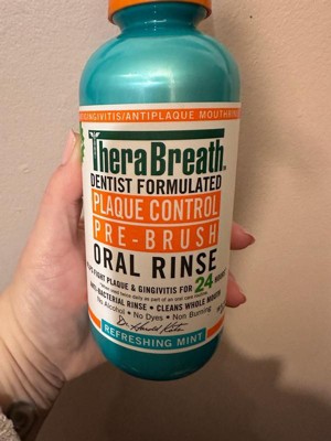- For a fresh breath mouthwash that fights plaque, rinse with TheraBreath Plaque Control Pre-Brush Oral Rinse, brush, floss, and then swish with your favorite TheraBreath mouthwash