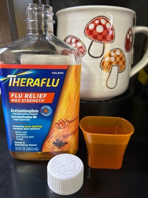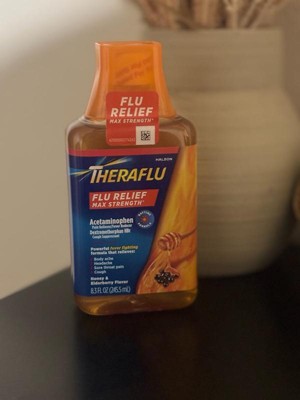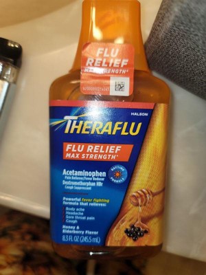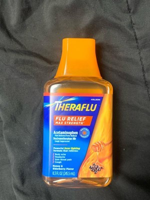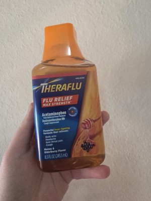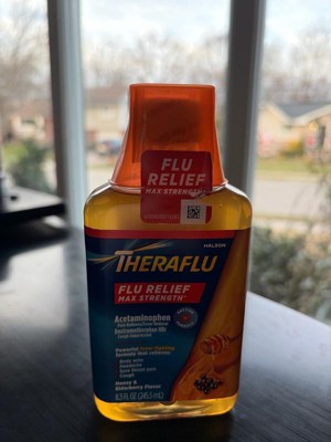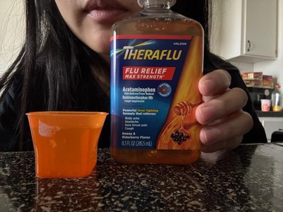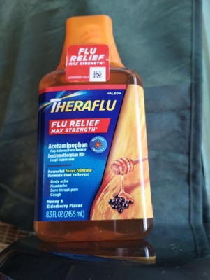 [This review was collected as part of a promotion.] Great to have Theraflu Flu Relief Max Strength in my medicine cabinet through cold and flu season. Most medicines taste gross but this has an elderberry and honey taste that I found to be okay, no bad aftertaste. I like to take this in the morning because it provides long lasting relief(about 6 hours) from my sore throat, body aches and fever. Just be aware not to overly take this medicine because the Acetaminophen is high in it. I take it about twice a day. It's affordable and a great addition to have on hand. I absolutely recommend everyone to have it in their medicine cabinet through flu and cold season!