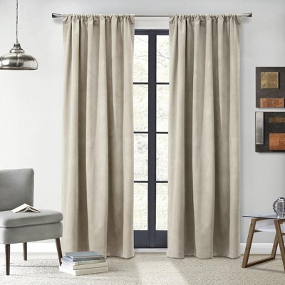 Indulge in the luxurious comfort of our Seren Velvet Room-Darkening Curtains. Crafted from plush, thick velvet, these curtains not only block out most light for privacy day and night but also insulate your room against temperature fluctuations. Their energy-efficient design helps cut heating and cooling costs, while the dual header offers versatile hanging options. Enjoy a quieter, more serene environment as these curtains also dampen sound and shield your interiors from UV damage. Perfect for any room, Seren curtains combine elegance with practicality. Available Sizes: 50"x63", 50"x84", 50"x95",and 50"x108". Color: Natural.