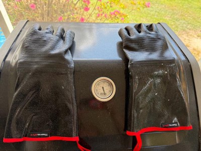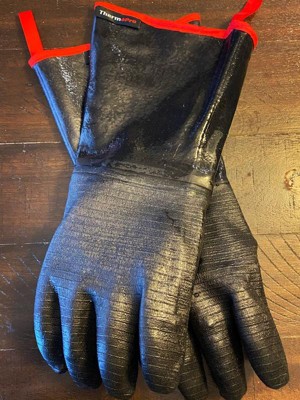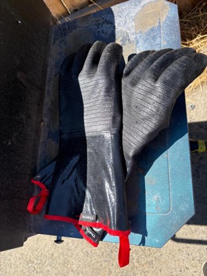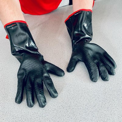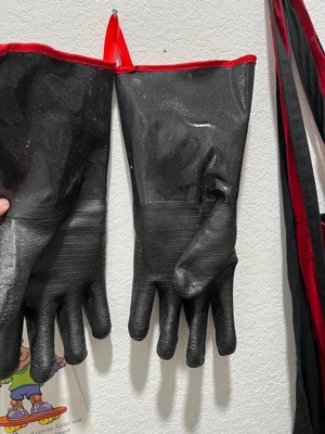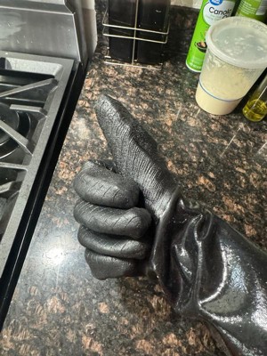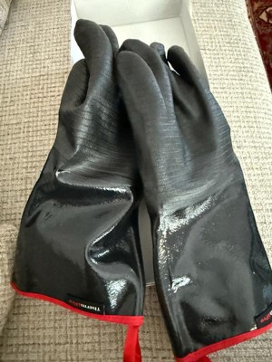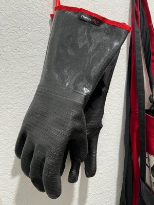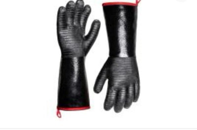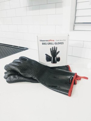 [This review was collected as part of a promotion.] The ThermoPro Black Neoprene BBQ Cooking Gloves are a highly rated, heavy-duty option designed for serious grilling and cooking tasks. Made from food-grade neoprene, they offer heat resistance up to 932 °F, with a long 14-inch gauntlet design to protect the forearms and a textured, non-slip surface for a secure grip on hot or greasy items. Users frequently praise their durability, waterproof exterior, and ease of cleaning—making them especially convenient for messy BBQ sessions. However, they’re not without drawbacks: users with smaller hands often find them bulky and awkward, and while the heat protection is strong, it may not hold up to prolonged exposure to extreme temperatures. There are occasional reports of rubbery odors out of the box, and the gloves can make precision handling difficult due to their size and thickness. Overall, they’re best suited for backyard grillers or pitmasters who prioritize protection and convenience over finesse.